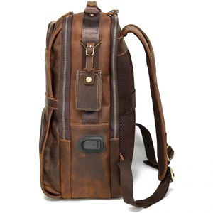 Lannsyne LB140 Mochila Unissex de Couro Genuino para Laptop Marrom