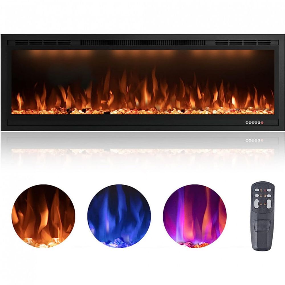 FÁCIL DE INSTALAR Esta lareira elétrica foi projetada para encastrar na parede e montada na parede. Você pode pendurá la facilmente na parede, tudo o que você precisa fazer é pendurá la e prendê la com os parafusos do drywall depois de montá la na parede. O calor sai da ventilação de aquecimento frontal, então também pode ser embutida na parede.