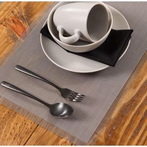 Os jogos americanos desta linha aliam a praticidade por serem de material sintético(laváveis) e a beleza devido ao seu aspecto que imita linho e o acabamento em franjas.