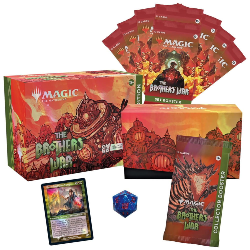 O ponto alto deste pacote é o The Brothers' War Collector Booster, um tesouro exclusivo que pode conter um card de Transformers com arte alternativa de Shattered Glass e/ou um card especial Serialized Schematic. Apenas os mais sortudos terão a chance de adicionar essas raridades à sua coleção.