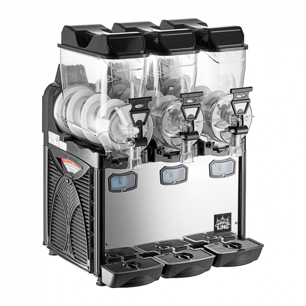 Atenção: Todos os produtos elétricos são 110V e necessitam de adaptador para a tomada no formato Brasileiro. Apresentando controle ajustável de espessura, esta máquina triple permite misturar várias bebidas congeladas de uma só vez. Com estrutura durável de aço inoxidável e bandeja removível para limpeza fácil, é ideal para ambientes de baixo uso. Perfeito para tratar seus clientes com smoothies, slushies e granitas refrescantes, este dispensador triplo certamente impulsionará as vendas. As tigelas transparentes de 9,8 litros oferecem alta visibilidade, atraindo potenciais clientes para experimentarem suas bebidas. Mantenha seus clientes felizes e hidratados com suas deliciosas misturas congeladas servidas de forma fácil e eficiente. Especificações: Peso do Pacote: 71.66 quilogramas, Amperes: 9.2 Amperes, Profundidade: 53 cm, Altura: 84 cm, Largura: 57 cm, Peso de Envio: 71.66 kg, Voltagem: 110 Volts, Potência: 1.100 Watts Cor:Preto e Prata