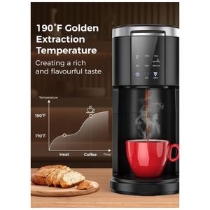 Atenção: Todos os produtos elétricos são 110V e necessitam de adaptador para a tomada no formato Brasileiro. Esta cafeteira 2 em 1 é perfeita para quem gosta de variedade em seu café. Compatível com cápsulas KCups e café moído, ela possui um filtro 2 em 1 que atende às diversas preferências dos usuários. Além disso, a preparação do café é rápida, levando apenas 90 segundos para desfrutar de uma deliciosa xícara de café, eliminando tempos de espera desnecessários.