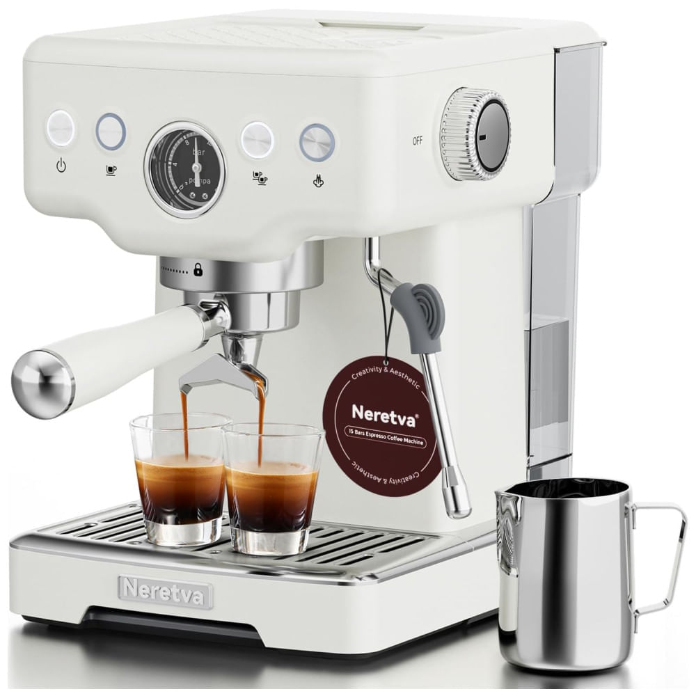 Atenção: Todos os produtos elétricos são 110V e necessitam de adaptador para a tomada no formato Brasileiro. A Máquina de café expresso para home office é perfeita para quem busca preparar café expresso, cappuccino e lattes de qualidade barista sem esforço. Com um poderoso sistema de pressão profissional de 15 bar, é possível extrair café de alta qualidade e criar bebidas favoritas. O manômetro integrado mostra a pressão exata, permitindo ajustes de acordo com as preferências pessoais de gosto.
