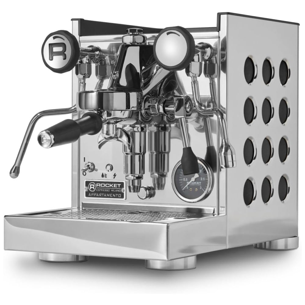 Cada máquina Rocket Espresso é meticulosamente fabricada à mão em Milão, Itália, refletindo o compromisso da marca com a qualidade artesanal e o design elegante.
