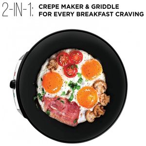 CONVENIENTE E FÁCIL DE LIMPAR A superfície de cozimento extra grande de facilita a criação de crepes com qualidade de restaurante na sua cozinha. Basta pré aquecer, espalhar uma fina camada de massa e assistir seu crepe cozinhar em segundos. Além disso, a superfície de alumínio antiaderente limpa tão facilmente quanto cozinha. Com o zenamento simples do cabo envolvente e a construção estreita do gadget de café da manhã, guarde sua máquina de crepe em qualquer lugar