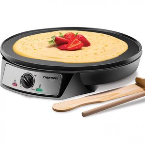 Atenção: Todos os produtos elétricos são 110V e necessitam de adaptador para a tomada no formato Brasileiro. CADA DESEJO DE CAFÉ DA MANHÃ Faça todas as manhãs um deleite com seu Chefman Electric Griddle Crepe Maker. Sirva deliciosos crepes, blintzes, panquecas, ovos e bacon de forma rápida e fácil. A superfície antiaderente de 12 polegadas é ideal para alimentar toda a família. Esta panela de crepe multifuncional funciona como uma chapa, perfeita para café da manhã, brunch, almoço ou até mesmo jantar.