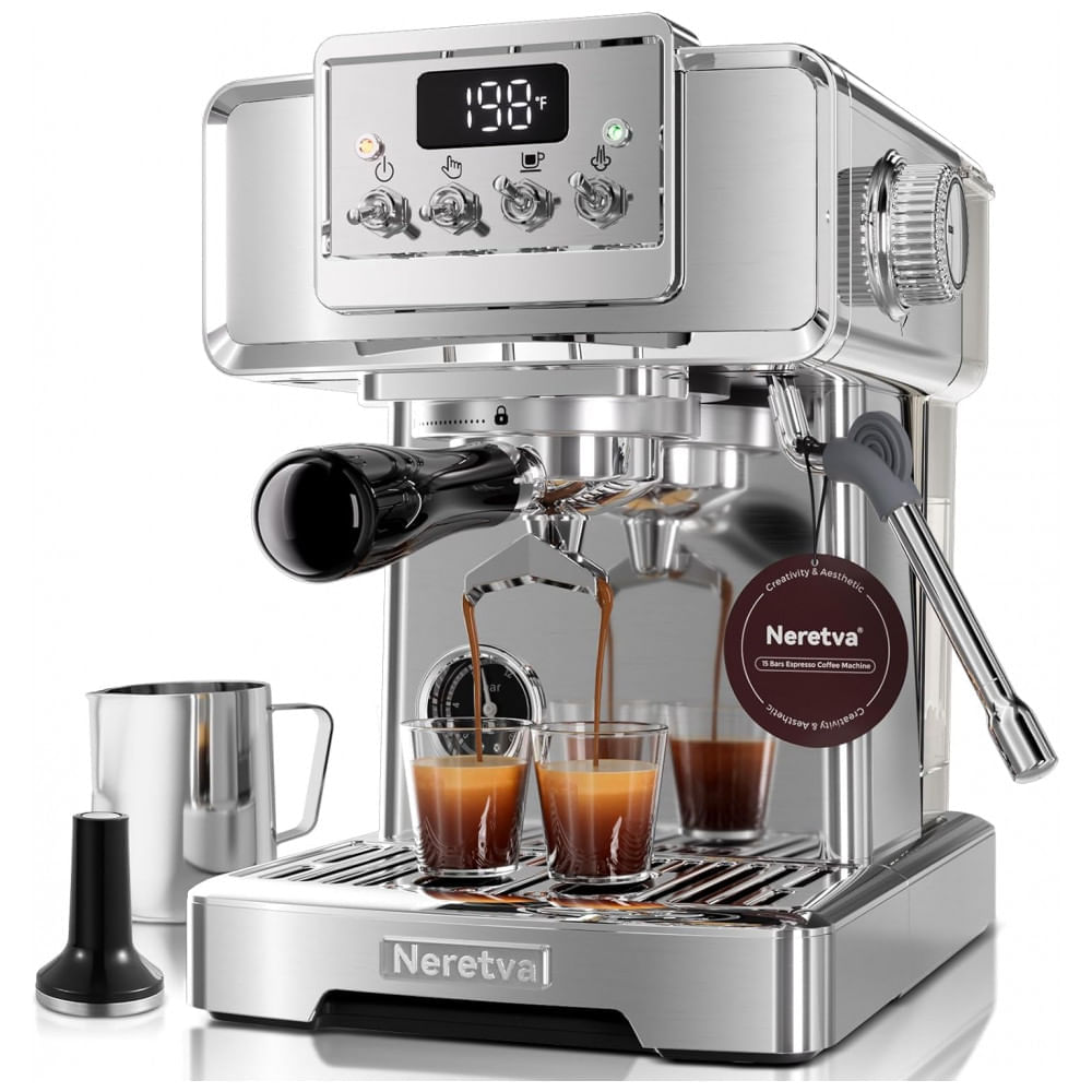 Atenção: Todos os produtos elétricos são 110V e necessitam de adaptador para a tomada no formato Brasileiro. A Neretva CP6100U 58mm é uma máquina de espresso semiautomática de padrão profissional, desenvolvida para entusiastas e baristas domésticos que buscam máxima extração, controle e acabamento retrô sofisticado em inox prata. Seu sistema de bomba italiana de 15 bar e caldeira instantânea de 1450 W entrega extração eficiente para espressos encorpados, ricos em crema e nuances aromáticas autênticas. O grupo extrator profissional de 58mm, com cestas não pressurizadas em inox, permite resultados de cafeterias avançadas, com flexibilidade para preparar doses simples ou duplas, além de facilitar o domínio de técnicas como "dial-in" por moagem e fluxo/presão. O painel exibe manômetro de pressão e termômetro, proporcionando total controle e leitura em tempo real da pressão ideal (9-12 bar) e temperatura de extração, ambos facilmente ajustáveis conforme cada perfil de grão. A pré-infusão automática umedece homogênea e suavemente o pó de café antes da extração em alta pressão, ampliando a complexidade sensorial e abolindo canais de água (channeling). O sistema de alívio de pressão automático (OPV) mantém a qualidade da extração e prolonga a vida útil do equipamento. O vaporizador profissional em inox libera vapor intenso para texturização de leite - ideal para lattes, cappuccinos e latte art - e também água quente para americanos e chás. O reservatório de 1,8 litro (removível) oferece autonomia para diversos ciclos, facilitando o abastecimento e a limpeza. O topo funciona como aquecedor de xícaras, mantendo a bebida sempre na temperatura ideal. Design robusto, em aço inox escovado retrô, com base antiderrapante e operação silenciosa. Acompanha: porta-filtro 58mm inox, filtro simples 14g, filtro duplo 19g (ambos não pressurizados), jarra leite inox 350ml, colher dosadora/tamper, dosing ring, manual técnico detalhado. Compatível apenas com café moído. Indicado para espresso, cappuccino, latte, americano e mocha, atende usuários avançados e iniciantes que exigem controle técnico e máxima performance. Ficha Técnica: Modelo: CP6100U Tipo: Máquina de espresso semiautomática profissional 58mm Pressão da bomba: 15 bar (italiana) Potência: 1450W Grupo extrator: 58mm, inox, compatível com café moído e cestas não pressurizadas Pré-infusão: Automática Alívio de pressão: OPV (automático) Vaporizador: Profissional inox, modo vapor/hot water Painel: Manômetro e termômetro visíveis Controle de temperatura: Termostato eletrônico Reservatório de água: 1,8 litro (removível) Aquecedor de xícaras: Integrado no topo Bandeja coletora: Removível Material: Aço inox escovado Cor: Prata Dimensões (C x L x A): 23 cm x 28 cm x 29 cm (aprox.) Peso: 5,6 kg Filtros inclusos: 14g (single), 19g (double), ambos não pressurizados Acessórios: Porta-filtro 58mm inox, jarra leite inox 350ml, dosing ring, colher/tamper, manual Voltagem: 220V Uso indicado: Residencial, escritório, cafeteria boutique Tipos de bebida: Espresso, cappuccino, latte, americano, mocha