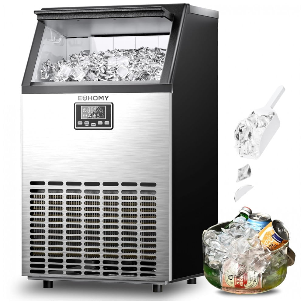 Atenção: Todos os produtos elétricos são 110V e necessitam de adaptador para a tomada no formato Brasileiro. A Máquina de Gelo Comercial EUHOMY CIM009-100BS produz até 100 lbs (45,4 kg) de gelo em formato lua por dia, com bin de armazenamento para 33 lbs (15 kg). Projetada para instalação sob balcão ou uso autônomo, gera 64 cubos cristalinos em 15-20 minutos por ciclo, com espessura ajustável via tempo de produção para adaptação a bebidas variadas. Certificação ETL confirma conformidade com normas de segurança elétrica para ambientes comerciais como bares, restaurantes, cafés, hotéis e cozinhas internas/externas. Painel LCD multifuncional exibe temperatura ambiente, permite programação de timer de 24 horas para ligar/desligar, ajuste de tamanho dos cubos e ativação de limpeza automática com botão dedicado. Sistema de produção bilateral simultânea otimiza ciclos, reduzindo consumo energético e desgaste do compressor. Prevenção automática de transbordamento gerencia o bin eficientemente. Drenagem por gravidade requer mangueira posicionada abaixo do nível da máquina, com escoamento diário via mangueirinha lateral direita. Construção em aço inoxidável resiste à corrosão e facilita higienização. Refrigerante R290a assegura refrigeração eficiente. Posicione verticalmente por 24 horas antes da operação inicial; execute dois ciclos de limpeza por timer (pressione botão por 5 segundos). Otimizada para SEO com máquina de gelo comercial lua, 100 lbs/dia, sob balcão e freestanding. Ficha Técnica Especificação Detalhes Marca EUHOMY Modelo CIM009-100BS Produção Diária 100 lbs (45,4 kg) de gelo lua Capacidade do Bin 33 lbs (15 kg) Voltagem 115 Volts Material Aço Inoxidável Refrigerante R290a Dimensões (P x L x A) 44,5 cm x 41 cm x 79,5 cm Certificação ETL Funções Painel LCD com timer 24h, ajuste de espessura, autolimpeza, produção bilateral, prevenção de transbordamento, drenagem por gravidade Componentes Inclusos Máquina de gelo Cor Preto e Prata Peso 40 kg