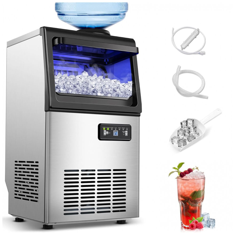 Atenção: Todos os produtos elétricos são 110V e necessitam de adaptador para a tomada no formato Brasileiro. A Máquina de Gelo Comercial Zomagas SKF-ATS40FT produz até 110 libras (50 kg) de gelo por dia, com ciclos de 40 cubos, graças ao compressor eficiente e potente. Equipada com reservatório de armazenamento de 22 libras (10 kg), é ideal para uso em bares, restaurantes, hotéis e cafeterias. Oferece opções duplas de entrada de água, compatíveis com água filtrada da torneira ou garrafas, gerando cubos de gelo cristalinos em cada ciclo. Este modelo sob o balcão ou autônomo possui painel de controle inteligente com temporizador de 24 horas, função de autolimpeza por um toque, luz azul integrada e indicador de falhas. Os orifícios de resfriamento de alta velocidade evitam superaquecimento, garantindo operação contínua. Dimensões compactas de 41,5 cm de profundidade x 40,5 cm de largura x 72,5 cm de altura otimizam o espaço em cozinhas comerciais ou ambientes de serviço. Otimizada para desempenho técnico, utiliza refrigerante R290a e inclui mangueira de entrada de água. A voltagem original de 110V suporta instalação flexível como unidade sob bancada ou independente, atendendo demandas de produção de gelo em escala comercial com eficiência energética e baixa emissão sonora. Ficha Técnica Especificação Detalhes Marca Zomagas Modelo SKF-ATS40FT Produção de gelo 110 libras (50 kg)/24 horas Cubos por ciclo 40 Capacidade de armazenamento 22 libras (10 kg) Dimensões (P x L x A) 41,5 cm x 40,5 cm x 72,5 cm Refrigerante R290a Voltagem 110V Componentes inclusos Mangueira de entrada de água Recursos Autolimpeza, temporizador 24h, luz azul, indicador de falhas, entradas duplas de água Instalação Sob bancada ou autônoma Material Aço inoxidável Cor Prata Peso 20 kg