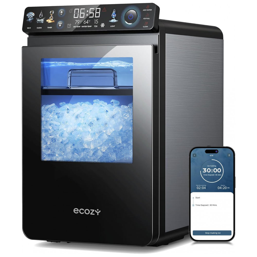 Atenção: Todos os produtos elétricos são 110V e necessitam de adaptador para a tomada no formato Brasileiro. A Máquina de Gelo Nugget Ecosy IM-NS451B, em aço inoxidável, produz até 20 kg de gelo pellet macio por dia, projetada para operação contínua em cozinhas residenciais ou comerciais. O painel IceLumix full-color apresenta ícones vibrantes, monitoramento de TDS em tempo real e temperatura atual, permitindo controle preciso e visualização clara do ciclo de produção de gelo nugget. Com isolamento térmico de dupla camada, mantém o gelo 20% mais frio por mais tempo, melhorando a eficiência energética e reduzindo derretimento. O tanque de água pull-out simplifica reabastecimentos e limpezas, enquanto a cesta removível com luz LED integrada facilita a verificação rápida do nível de gelo. Controle inteligente via aplicativo EcozyHome e assistentes de voz Alexa e Google Assistant possibilita iniciar, pausar e monitorar remotamente de qualquer localização. Função de autolimpeza automática combinada com peças removíveis garante manutenção eficiente. Opera com 192 W de potência, voltagem 115 V e refrigerante R600a, em dimensões compactas de 23,7 cm (P) x 35,6 cm (L) x 39,4 cm (A). Otimizada para máquinas de gelo countertop, oferece tecnologias avançadas para produção confiável de gelo mastigável em aço inoxidável durável. Ficha Técnica Especificação Detalhes Marca Ecosy Modelo IM-NS451B Cor/Material Aço inoxidável(Preto) Capacidade de produção 20 kg de gelo por dia Potência 192 W Voltagem 115 V Refrigerante R600a Dimensões (P x L x A) 23,7 cm x 35,6 cm x 39,4 cm Altura 39,4 cm Painel IceLumix full-color com TDS e temperatura em tempo real Isolamento Dupla camada Tanque de água Removível pull-out Cesta de gelo Removível com luz LED Controles App EcozyHome, Alexa, Google Assistant Funções Autolimpeza, gelo nugget macio Componentes inclusos Máquina de gelo, concha para gelo, sacos para gelo, guia do usuário UPC 850061905444 Peso 20 kg