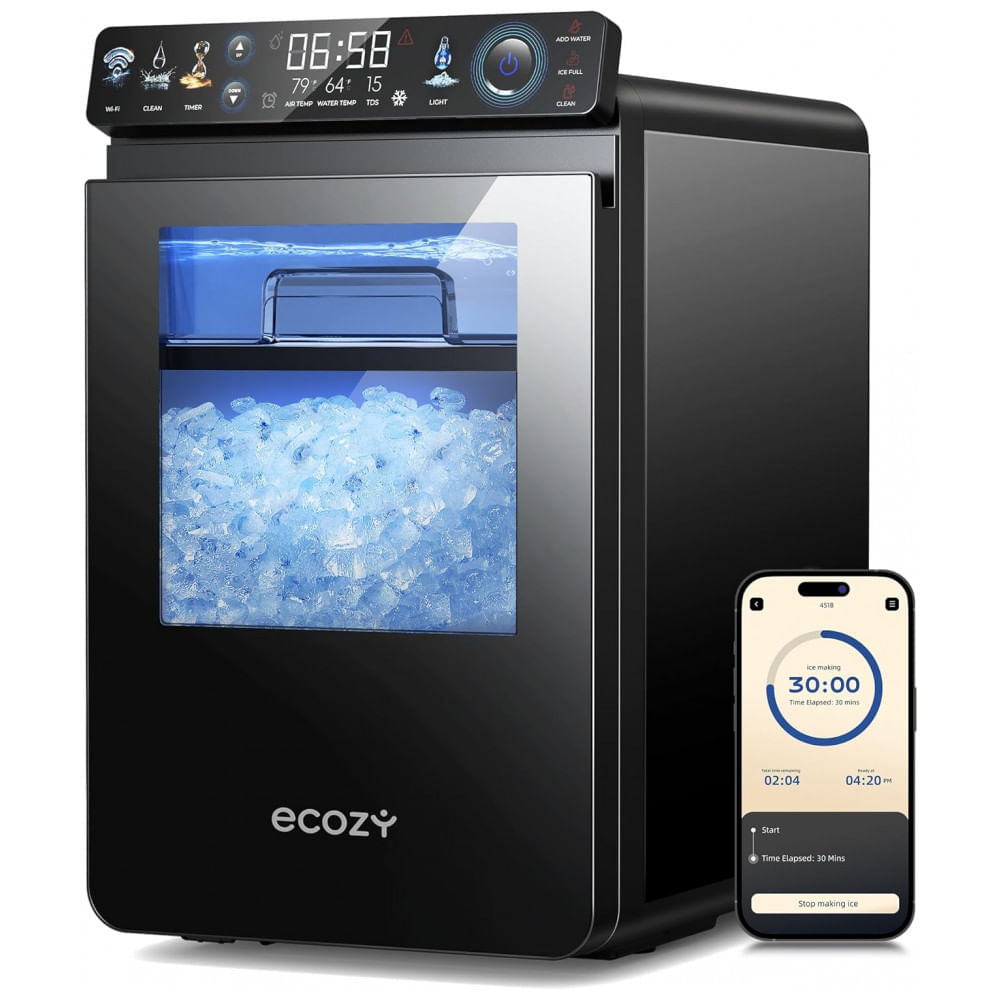 Atenção: Todos os produtos elétricos são 110V e necessitam de adaptador para a tomada no formato Brasileiro. A Máquina de Gelo Nugget Ecosy IM-NS451B, na cor preta, produz até 20 kg de gelo pellet macio e mastigável por dia, ideal para uso contínuo em residências ou eventos. Equipada com painel IceLumix de tela colorida full-color, exibe ícones vibrantes, TDS em tempo real e temperatura atual para monitoramento preciso do processo de produção de gelo. A isolamento térmico de dupla camada mantém o gelo 20% mais frio por mais tempo, otimizando a eficiência energética e reduzindo derretimento. O tanque de água removível facilita o reabastecimento e a limpeza, enquanto a cesta de gelo com luz LED integrada permite verificação rápida do nível sem esforço. Controle inteligente via aplicativo EcozyHome, compatível com assistentes de voz Alexa e Google Assistant, permite ligar, desligar e monitorar remotamente de qualquer lugar. Função de autolimpeza automática e peças removíveis garantem manutenção simples e higiene otimizada. Opera com 192 W de potência e voltagem de 115 V, utilizando refrigerante R600a em estrutura compacta de dimensões 23,7 cm (P) x 35,6 cm (L) x 39,4 cm (A). Otimizada para produção eficiente de gelo nugget, esta máquina countertop integra tecnologia avançada para desempenho confiável e operação intuitiva. Ficha Técnica Especificação Detalhes Marca Ecosy Modelo IM-NS451B Cor Preto Capacidade de produção 20 kg de gelo por dia Potência 192 W Voltagem 115 V Refrigerante R600a Dimensões (P x L x A) 23,7 cm x 35,6 cm x 39,4 cm Altura do item 39,4 cm Material Plástico preto Painel de exibição IceLumix full-color com ícones vibrantes, TDS e temperatura em tempo real Isolamento térmico Dupla camada (gelo 20% mais frio por mais tempo) Tanque de água Removível para reabastecimento e limpeza Cesta de gelo Removível com luz LED integrada Controles App EcozyHome, Alexa, Google Assistant Funções Autolimpeza, produção de gelo nugget macio Componentes inclusos Máquina de gelo UPC 850074197089 Cor Preta Peso 20 kg