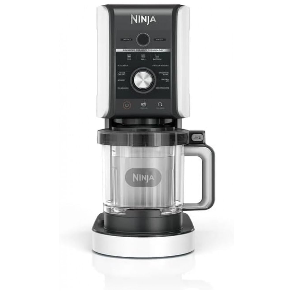 Atenção: Todos os produtos elétricos são 110V e necessitam de adaptador para a tomada no formato Brasileiro. A Ninja CREAMi MAX 9-em-1 é uma máquina elétrica avançada para preparo de sobremesas congeladas, com capacidade XL de 1,5 quartos. Equipada com tecnologia CREAMi MAX, possui lâminas de precisão que processam bases congeladas em texturas ultra-lisas e cremosas, operando de forma mais rápida e silenciosa. Inclui dois recipientes familiares de 710 ml, ideais para lotes maiores e múltiplos sabores. Oferece 9 programas de toque único para sorvete, gelato, sorbet, milkshakes, tigelas de smoothie, iogurte congelado e mais. Personalize com aditivos como chips de chocolate, nozes ou frutas, ajustando textura e ingredientes via configurações customizáveis. Dimensões compactas de 26,7 cm (C) x 16,5 cm (L) x 40,6 cm (A) e peso de 6,1 kg facilitam o armazenamento em cozinhas residenciais. Fácil operação com base motorizada, tigela interna de processamento, tigela externa, pá creamerizer e acionador de motor. Peças removíveis compatíveis com lava-louças agilizam a limpeza, enquanto a base requer apenas pano úmido. Construída em plástico e aço inoxidável, modelo NC550 fabricado em 2023 pela Ninja, garante durabilidade e desempenho consistente em preparos congelados. Ficha Técnica Especificação Detalhes Marca Ninja Modelo NC550 Capacidade 1,5 quartos (inclui 2 recipientes de 710 ml) Dimensões (C x L x A) 26,7 cm x 16,5 cm x 40,6 cm Voltagem 110V Material Plástico e aço inoxidável Funções 9 programas: sorvete, gelato, sorbet, milkshakes, tigelas de smoothie, iogurte congelado e mais Componentes inclusos Base da máquina, tigela interna de processamento, tigela externa, pá creamerizer, acionador de motor Modo de operação Elétrico Cuidados Peças removíveis em lava-louças; base com pano úmido Recursos especiais Configurações customizáveis, múltiplos programas para sobremesas congeladas, tigela removível Cor Preto e Cinza Peso 6,6 kg