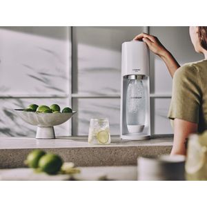 Apresentando a Terra, a máquina de água com gás mais vendida da SodaStream. Transforme água comum em água com gás fresca em segundos. Projetada para cozinhas modernas, possui a nova tecnologia Quick Connect para inserção rápida e fácil do cilindro de CO2.