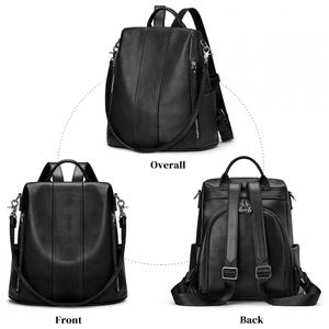 Mochila Feminina de Couro Conversível para Bolsa de Ombro, S ZONE, Preta