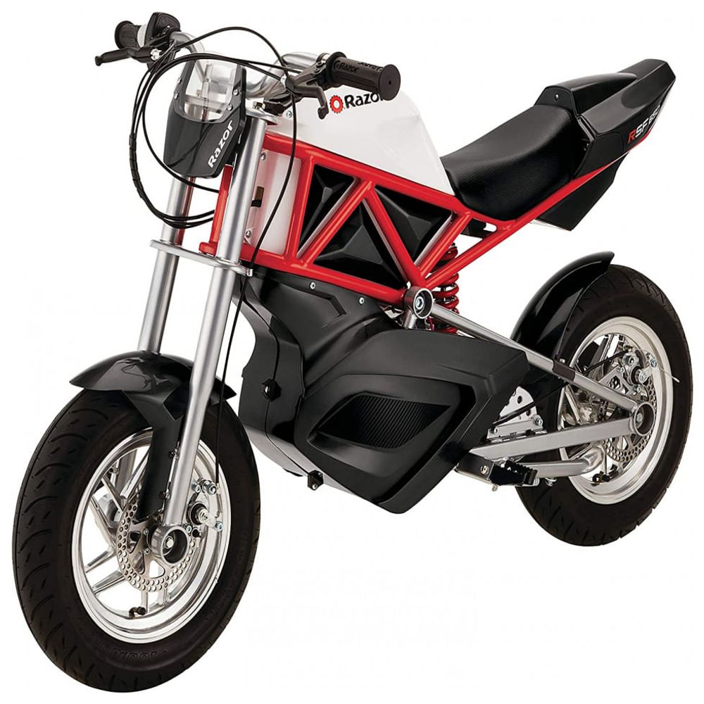 Possui rodas magras personalizadas de e pneus de rua, suspensão traseira, acelerador de aperto de torção de velocidade variável e freios a disco traseiros acionados à mão
