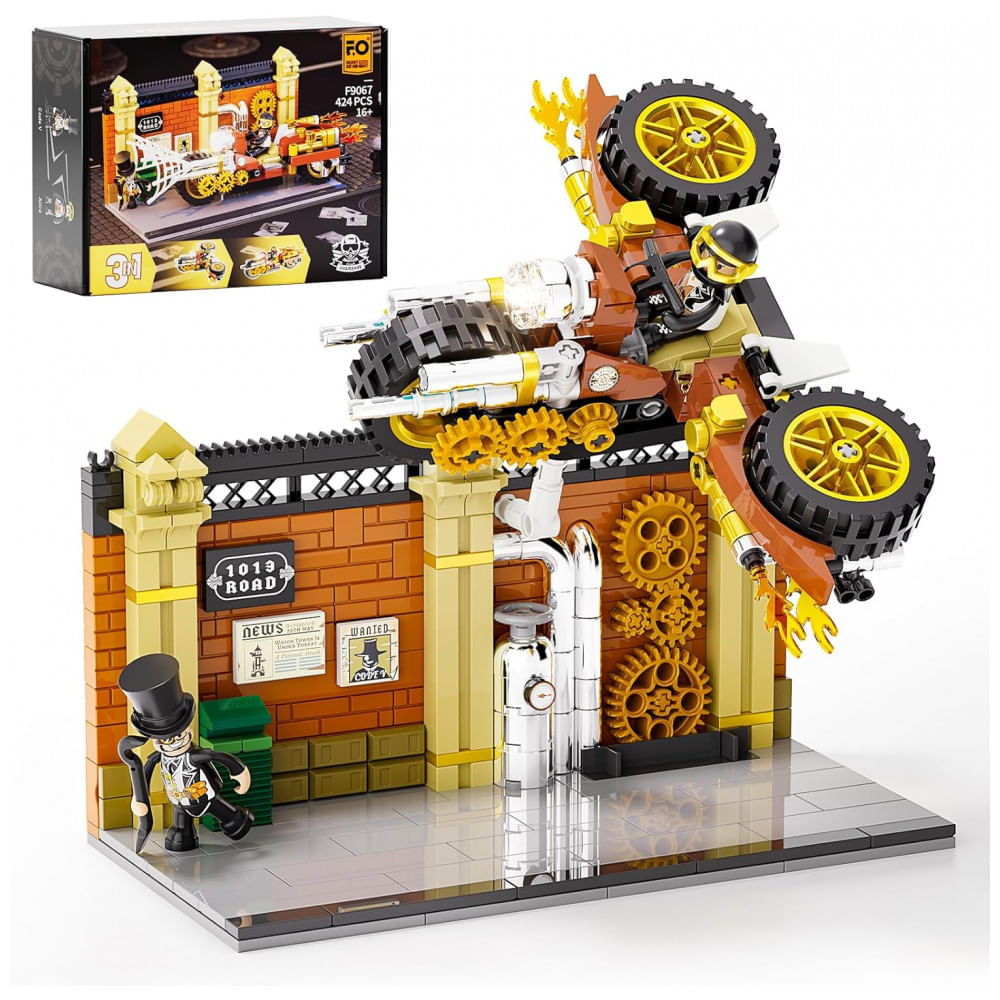 Atenção: Todos os produtos elétricos são 110V e necessitam de adaptador para a tomada no formato Brasileiro. O kit FUNWHOLE Motocicleta Steampunk Flying Motorbike é composto por 424 peças em plástico ABS que permitem montar uma moto futurista inspirada na estética steampunk com acabamento em tons de latão, preto e marrom. O modelo apresenta elementos mecânicos detalhados, como engrenagens móveis, tubos metálicos expostos e componentes a vapor, refletindo um design retrô-industrial inspirado no estilo vitoriano. Este conjunto possui iluminação funcional com farol frontal LED integrado, proporcionando realismo e destaque em ambientes com pouca luz. A motocicleta oferece três modos distintos de utilização: modo pilotagem para uso terrestre, modo perseguição para ação em alta velocidade, e modo voo, no qual o veículo se transforma em uma máquina aérea steampunk com funcionalidade de suspensão para exibição dinâmica. O design modular e compatível permite integração com outros kits temáticos steampunk, ampliando as possibilidades de personalização e criação de cenários complexos, seja como peça isolada para exposição ou complemento a coleções maiores. Indicada para maiores de 16 anos, esta montagem estimula o desenvolvimento do pensamento criativo e habilidades técnicas, especialmente para colecionadores e fãs de temas vintage, alternativos e de ficção científica. Ficha Técnica: Marca: FUNWHOLE Modelo: Flying Motorbike (F9067) Material: Plástico ABS resistente Número de peças: 424 Sistema de iluminação: Farol frontal LED funcional Modos de montagem: Pilotagem terrestre, perseguição em alta velocidade e voo suspenso Dimensões montado: 19 cm (comprimento) x 9,7 cm (largura) x 11 cm (altura) Peso do produto: 660 gramas Características adicionais: Engrenagens móveis, tubos metálicos expostos, design steampunk retrô-industrial, compatível com outros kits steampunk Faixa etária recomendada: a partir de 16 anos Objetivo educacional: Desenvolvimento do pensamento criativo e habilidades técnicas Cor:Multicolorido
