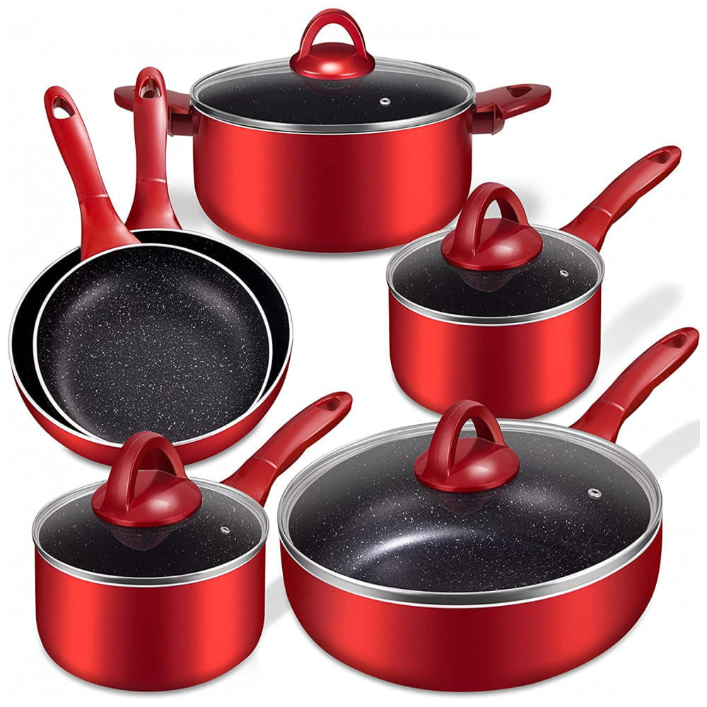 Conjunto de panelas e frigideiras antiaderentes conjuntos de panelas de inducao 10 pecas para todos os fogoes conjuntos