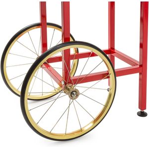 Qualidade superior projetada com um estilo antigo autêntico atualizado com recursos modernos, esta atraente máquina de pipoca não oferece apenas apelo visual, mas durabilidade duradoura. Construída em aço inoxidável resistente, um motor silencioso, 850 watts de potência e pintura premium com acabamento brilhante, a máquina líder do setor. chaleira serve até 4 litros de pipoca por lote. O carrinho robusto oferece amplo zenamento e possui rodas grandes para fácil transporte.