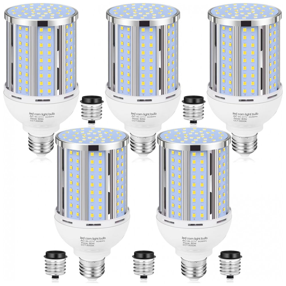 Atenção: Todos os produtos elétricos são 110V e necessitam de adaptador para a tomada no formato Brasileiro. A Lâmpada de Milho LED da XYCN garante qualidade excepcional, longa vida útil de mais de 55.000 horas, reprodução de cores fiel com Índice de Reprodução de Cor de 85, dissipação de calor eficiente, design sem ventilador, brilho intenso de 11.600 lumens e ângulo de feixe de 360 graus. Com 80 watts de potência, esta lâmpada é ideal para iluminar armazéns, garagens, pátios, supermercados, fábricas, estacionamentos, escolas, hospitais, academias e ruas. Instalação fácil com base E26/E39. Não perca tempo, ilumine seu espaço com eficiência e qualidade. Especificações: Light Type: LED, Special Feature: Ligação Instantânea, Não Regulável, Super Brilhante, Design Sem Ventilador, Operação Silenciosa, Ideal para luminárias totalmente fechadas. Veja mais, Wattage: 80 watts, Bulb Shape Size: T, Bulb Base: E26, Usos Específicos para o Produto: garagem, porão, armazém, celeiro, pátio, supermercado, escritório, estacionamentos, escola, hospital, academia, iluminação de rua onde for necessário iluminação suficiente, Light Color: Branco, Voltage: 110 Volts, Unit Count: 2.0 Unidades, Color Temperature: 5000 Kelvin, Number of Items: 5, Brightness: 11600 lumens, Shape: Tubular(T), Material: Alumínio, Model Name: YM-80W-5pack, Power Source: Elétrico com Fio, Color Rendering Index: 85.0, Beam Angle: 360 Graus, Power Consumption: 80 Watts, Item Package Quantity: 1, Light Source Type: LED, Light Source Wattage: 80 Watts, Accepted voltage frequency: 100 a 240 Volts e 50 a 60 Hertz, White Brightness: 11600 Lumens, Manufacturer: XYCN, Color: Branco, Part Number: YM-80W-5pack, Item Weight: 2,27 kg, Package Dimensions: 40,77 x 18,69 x 8,41 centímetros; 1,31 quilos, Item model number: YM-80W-5pack, Included Components: LEDs, Special Features: Ligação Instantânea, Não Regulável, Super Brilhante, Design Sem Ventilador, Operação Silenciosa, Ideal para luminárias totalmente fechadas, Batteries Included?: Não, Batteries Required?: Não
