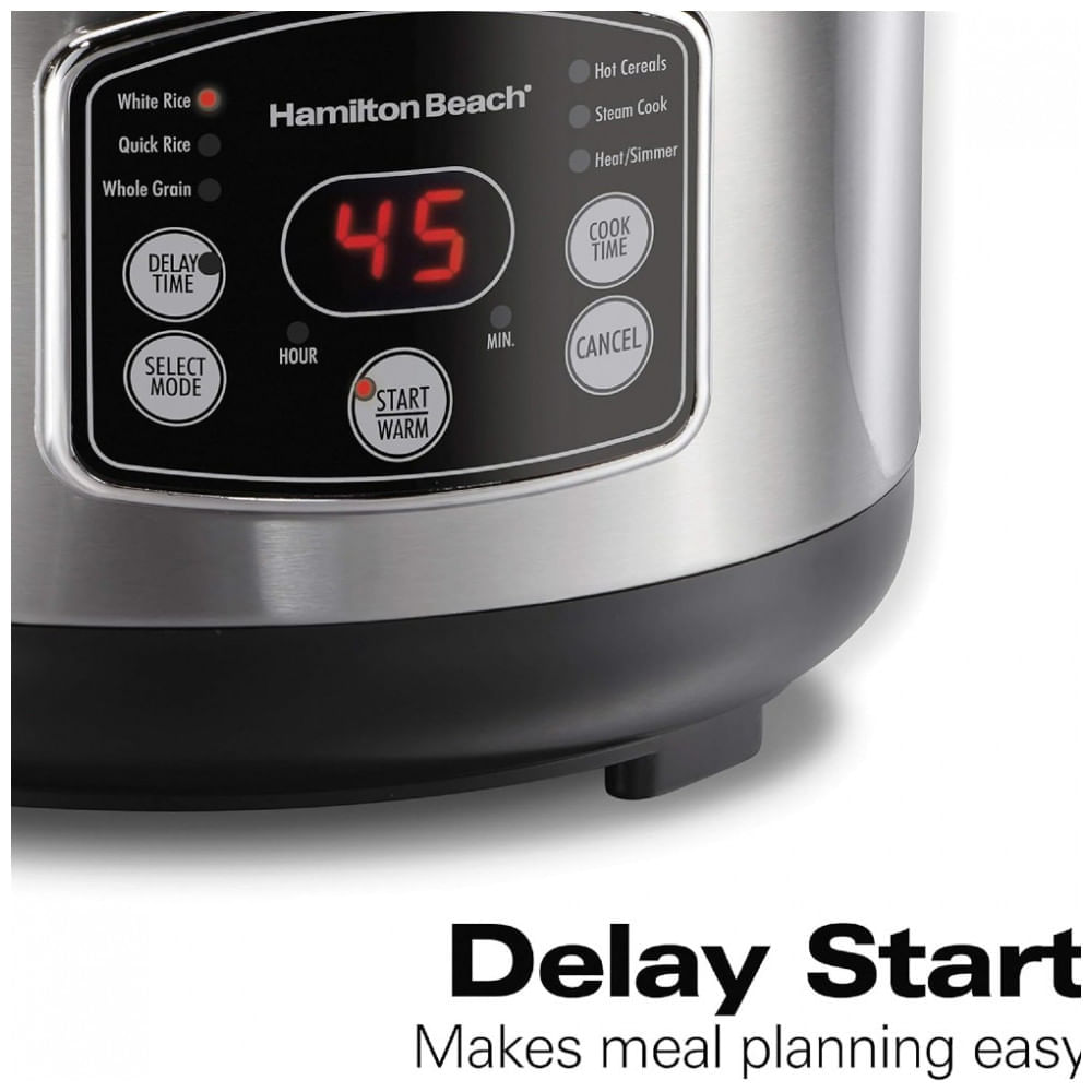 Atenção: Todos os produtos elétricos são 110V e necessitam de adaptador para a tomada no formato Brasileiro. Preparar uma refeição completa e equilibrada na Panela de Arroz Elétrica e Vaporizador de Alimentos da Hamilton Beach é tão simples quanto colocar os ingredientes na tigela e ligar o aparelho. Além de cozinhar arroz e grãos inteiros perfeitamente, o cesto integrado pode ser usado para cozinhar no vapor frutos do mar, aves e legumes, enquanto o arroz cozinha abaixo. Com apenas alguns toques em um botão, é rápido e fácil servir salmão com couve e quinoa em uma noite e frango com brócolis sobre arroz branco na próxima. O cesto de vapor 2 em 1 também pode ser usado para enxaguar grãos antes do cozimento, prevenindo aglomeração e resultando em um sabor mais fresco. A limpeza é muito fácil com a panela antiaderente que pode ser lavada na lava-louças. Seu tamanho compacto facilita o armazenamento. Cozinhar refeições saudáveis e deliciosas não poderia ser mais simples. Não colocar sobre ou perto de uma chama a gás ou elétrica quente, ou em um forno aquecido. Especificações: Capacidade: 7 xícaras, Dimensões do Produto: 27,30 cm D x 27,30 cm L x 28,09 cm A, Fonte de alimentação: Elétrica, Instruções de cuidado do produto: Lavar à mão, Cor: Aço Inoxidável, Característica Especial: Programável, Material: Aço Inoxidável, Material da tampa: Plástico, Peso do Item: 2,17 kg, Potência: 500 watts, Componentes incluídos: Manual de Instruções, Copo Medidor, Panela de Arroz, Cesto de Vapor, Voltagem: 120 Volts, Nome do Modelo: Digital Programável, Fabricante: Hamilton Beach, UPC: 040094375417 081683031857 040094375486 040094375493, Número Global de Item para Comércio: 00081683031857, 10040094375483, Departamento: Unissex Adulto, Número do Modelo do Item: 37548