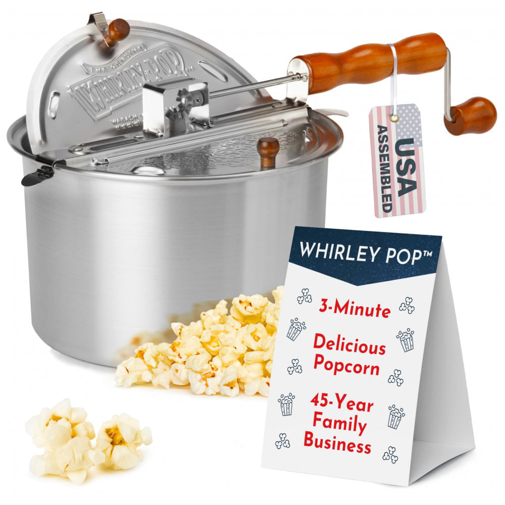 Atenção: Todos os produtos elétricos são 110V e necessitam de adaptador para a tomada no formato Brasileiro. A Pipoca Estufa Whirley Pop Original da Wabash Valley Farms em alumínio prata processa até 5,7 litros de pipoca em fogão, com rotação manual por manivela e sistema de agitação patenteado para movimentação contínua dos grãos. Adequada para preparo doméstico em fogões a gás, elétricos ou indução, finaliza lotes em 3 minutos com aplicação de calor direto. Construída em alumínio com engrenagens de nylon e metal, inclui superfície antiaderente para contato com alimentos. Funcionalidades abrangem tampa removível para acesso facilitado e guia de receitas incluso. Compatível com fogões residenciais padrão, operando sem eletricidade. Cuidados incluem limpeza com pano úmido após resfriamento, evitando abrasivos para manter o acabamento antiaderente. Ficha Técnica Capacidade: 5,7 litros Peso do item: 2 kg Material: Alumínio, metal (engrenagens de nylon) Potência: Manual (não elétrica) Fonte de alimentação: Fogão (gás, elétrico ou indução) Faixa etária: Adultos (uso supervisionado) Conteúdo da caixa: Pipoca estufa, guia de receitas Manual do usuário: Inglês