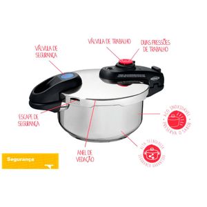 A Panela de Pressão Supra tem corpo em aço inoxidável - que preserva o sabor dos alimentos e conserva seus nutrientes - e fundo triplo - para um cozimento mais rápido e uniforme. Seu principal diferencial é a alta tecnologia que garante total segurança ao produto. A Panela de Pressão possui cinco dispositivos de segurança: válvula de segurança, escape de segurança, anel de vedação, válvula de trabalho e duas pressões de trabalho, todos aprovados pelo Inmetro. Possui fechamento externo, muito mais prático para manusear. Pode ir a lava-louças . Panelas de Pressão Brinox, maior variedade de receitas no seu dia a dia. Medidas: Ø20X17CM- 3 Litros.