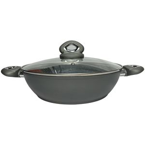 Parte da sofisticada linha Petravera Plus da italiana Bialetti, a wok de 28 cm foi criada para oferecer desempenho superior e praticidade no preparo de receitas orientais e salteados. Com corpo espesso em alumínio de 4 mm e revestimento antiaderente Petravera – enriquecido com partículas de granito – a peça proporciona um cozimento saudável, com pouca ou nenhuma adição de óleo, e maior durabilidade frente ao uso intenso. O fundo espesso favorece a distribuição homogênea do calor, enquanto a tampa de vidro transparente permite o monitoramento do preparo. Ideal para fogões a gás, elétricos e por indução, a wok alia resistência, estética refinada e eficiência energética.