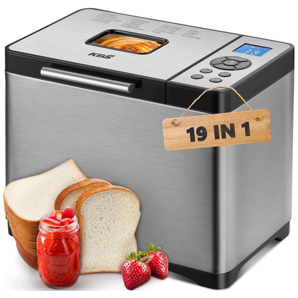 Atenção: Todos os produtos elétricos são 110V e necessitam de adaptador para a tomada no formato Brasileiro. A Máquina de Pão Automática KBS oferece 19 menus personalizados para preparar pães sem glúten, trigo integral, massa fermentada, massa de pizza, geléia, iogurte, bolos e muito mais. Com uma panela de cerâmica antiaderente removível, a máquina de pão promove o cozimento uniforme do pão e ajusta automaticamente o processo de cozimento para um resultado perfeito. Com um motor potente de 650W e capacidade de 910g, a máquina mistura ingredientes rapidamente e economiza 30 no consumo de eletricidade.
