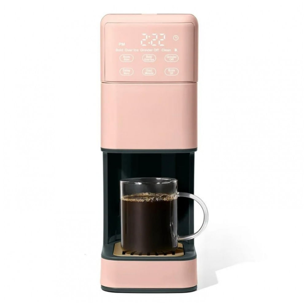 Atenção: Todos os produtos elétricos são 110V e necessitam de adaptador para a tomada no formato Brasileiro. A Perfect Grind Rose é uma máquina de café drip single serve com moedor burr integrado que processa grãos inteiros para preparos de 177 a 473 ml (6-16 oz), com opções de força regular, bold ou over ice, e reservatório removível de 1,89 L para múltiplos preparos diários. Suporta café quente ou gelado via display touch programável com timer para auto-brew matinal, eliminando necessidade de pods descartáveis. Construção em vidro, plástico e aço inoxidável com acabamento glossy e design compacto para bancadas de cozinha, apartamentos ou escritórios. Tecnologias incluem filtro ouro reutilizável, compatibilidade com K-cups, pausa e serve, keep warm e bandeja ajustável para canecas até 17,8 cm de altura. Funcionalidades abrangem preparo de pot de 12 xícaras opcional e operação elétrica intuitiva para uso doméstico. Cuidados recomendados: ciclo de enxágue inicial, inserção de filtro de carvão no reservatório e limpeza regular da cesta e moedor, conforme manual em inglês. Ficha Técnica Dimensões do produto: 31,8 x 24,9 x 34,3 cm (P x L x A); Peso: 5 kg. Potência: 1050 W; Voltagem: 120 V. Capacidade: 1,89 L (reservatório); Material: vidro, plástico, aço inoxidável. Tipo: drip single serve programável com filtro ouro reutilizável e suporte K-cup. Faixa etária: adultos. Conteúdo da caixa: máquina, jarra, cesta de filtro, suporte para pod single-serve, manual do usuário. Manual do usuário: inglês.