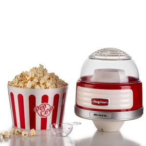 A máquina de pipoca da linha Party Time da Ariete acompanhará suas noites em família ou amigos, com pipocas caseiras crocantes e apetitosas prontas para serem mastigadas uma após a outra. Graças ao método especial de cozimento com ar quente, a Pipoqueira Retrô Party Time transforma 60g de milho em pipocas perfumadas e leves em menos de 2 minutos. Não será necessário adicionar mais nada, nem óleo, nem gordura, para obter um lanche leve mas saboroso, totalmente natural e sem gordura. Graças à tigela removível você pode levar suas pipocas quentes e crocantes diretamente para a mesa ou para o sofá!