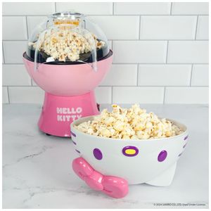 Adicione um toque de magia Sanrio à sua próxima noite de cinema com a Máquina de Pipoca Hello Kitty! Esta adorável máquina de pipoca tridimensional é perfeita para trazer um charme fofíssimo para sua coleção de eletrodomésticos. Ideal para uma noite de cinema, uma festa ou apenas para um lanche saboroso, a icônica máquina rosa de Hello Kitty faz pipoca recém-estourada com facilidade. A tampa superior não só é uma parte funcional, como também serve como uma tigela para servir, tornando o utensílio superfofo e prático.