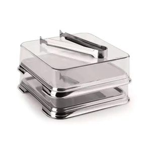 A base em inox garante durabilidade e resistência, enquanto a tampa em acrílico proporciona um visual perfeito dos alimentos.