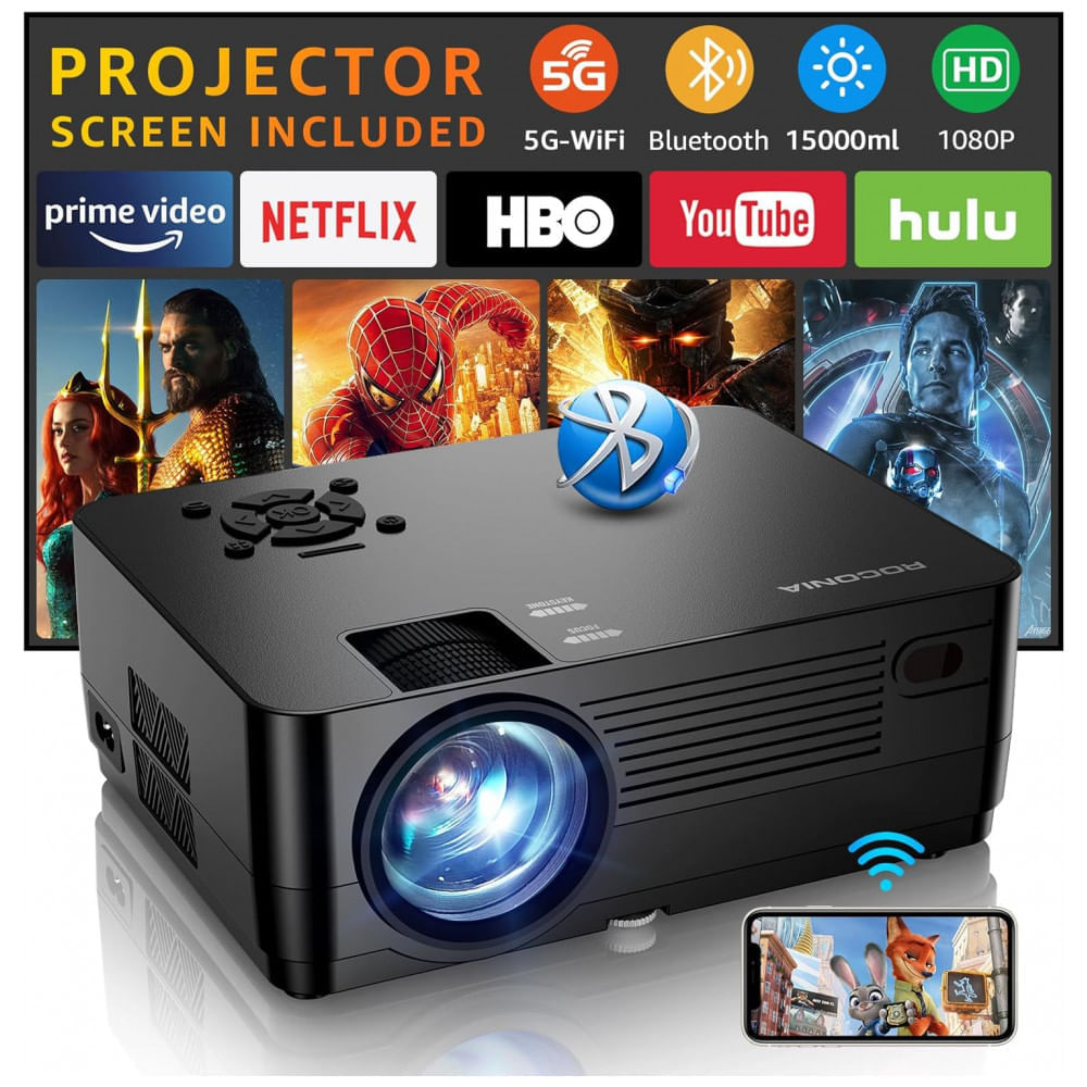 Atenção: Todos os produtos elétricos são 110V e necessitam de adaptador para a tomada no formato Brasileiro. O Projetor Roconia oferece uma incrível conexão Wi-Fi DualBand 2.4G5G e Bluetooth, permitindo espelhamento de tela em dispositivos iOS, Android e Windows sem adaptadores adicionais. Com resolução nativa de 1920x1080P, contraste de 10.000:1 e brilho de 18.000 lumens, proporciona imagens nítidas e vibrantes, mesmo em ambientes claros. Possui alto-falantes estéreo HiFi embutidos, sistema de som SRS e tela de 100'' para uma experiência audiovisual imersiva. Compatível com uma variedade de dispositivos e oferecendo múltiplas portas de conexão, como HDMI, USB, AV, VGA e P2, atende às suas necessidades diárias de entretenimento com qualidade e praticidade. Especificações: Nome da Marca: Roconia, Peso do Item: 2 kg, Dimensões do Produto: 22 x 16 x 8,5 cm, Número do Modelo: Q6, Cor: Preto, Características Especiais: Tela de 300'' e Função de Zoom de 75-100%, Conexão WiFi 5G+2.4G, Função Bluetooth 5.1, Acompanha tela de 100'' e bolsa, Resolução Nativa Full HD 1080P, Usos Recomendados para o Produto: Cinema em Casa, Filmes Internos e Externos, Jogos, Tecnologia de Conectividade: Com Fio/Sem Fio/Bluetooth/Wi-Fi/HDMI/USB/AV/3.5mm, Resolução de Tela: 1920 x 1080 Voltagem:110 volts