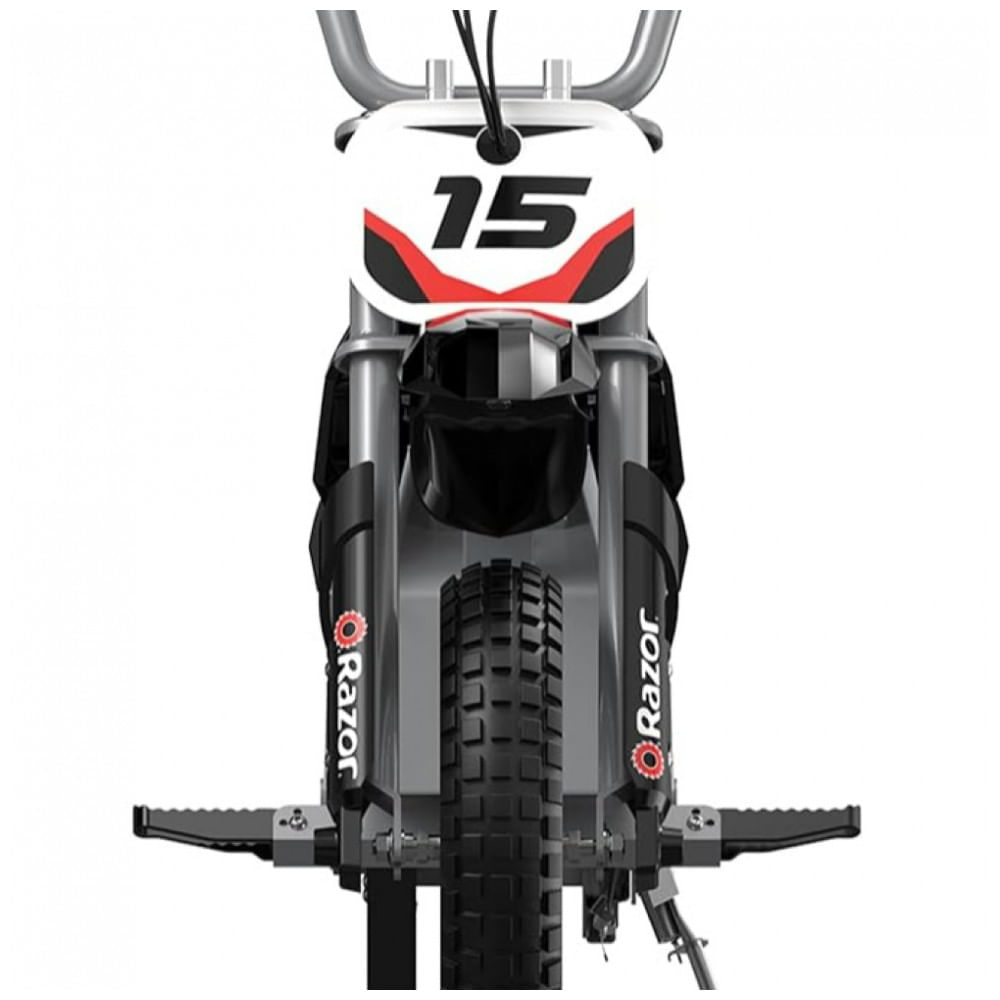Atenção: Todos os produtos elétricos são 110V e necessitam de adaptador para a tomada no formato Brasileiro. Projetada para fornecer a quantidade certa de potência para colinas suaves e trilhas off-road, a Razor MX400 Dirt Rocket está pronta para aventuras. Esta moto elétrica é inspirada em supercross e oferece aos jovens pilotos a força necessária para subir colinas e desfrutar de trilhas a até 14 milhas por hora. Com um motor de alta torque acionado por corrente na roda traseira, esta moto proporciona desempenho suave e centrado no piloto, sem a bagunça da gasolina. O acelerador TwistGrip coloca a potência onde seus instintos estão, enquanto o freio traseiro operado manualmente oferece uma frenagem confiante. Com até 30 minutos de autonomia contínua no modo de alta velocidade, este modelo suporta até 140 libras e é recomendado para crianças a partir de 8 anos. As rodas raiadas robustas com pneus pneumáticos de 12 polegadas proporcionam excelente tração em sujeira, cascalho e grama. As peças dobráveis e carenagens resistentes a impactos garantem durabilidade para uma verdadeira pilotagem off-road. Aproveite as trilhas e sinta a emoção de pilotar uma moto elétrica de motocross de alta performance! Especificações: Dimensões do Produto: 111,01 x 70,98 x 54,99 centímetros, Peso do Item: 21,86 quilogramas, Baterias: 2 baterias de 12V necessárias (inclusas), Fabricante: Razor