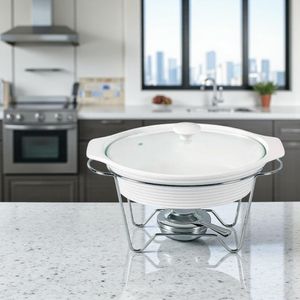 O rechaud oval em cerâmica Fracalanza Eleonora é a solução sofisticada e funcional para servir seus pratos, mantendo-os aquecidos e apresentáveis. Este rechaud de 2,3 litros une o charme da cerâmica com a máxima praticidade, sendo ideal para receber convidados ou para o uso diário.