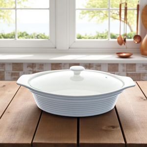 O grande diferencial é a versatilidade da travessa de cerâmica. Ela pode ser utilizada separadamente como um refratário de forno (suporta até 180° C), e também é segura para uso em micro-ondas e resistente a lava-louças. A cerâmica, além de dar um toque artesanal à mesa, garante excelente retenção de calor, mantendo seu prato quente por mais tempo.