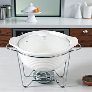 O rechaud redondo em cerâmica Fracalanza Eleonora é a solução elegante e funcional para servir seus pratos, mantendo-os aquecidos em banquetes ou reuniões. Este rechaud de 2,3 litros une o charme do formato redondo com a máxima praticidade da cerâmica, sendo uma peça de destaque em qualquer mesa.