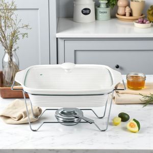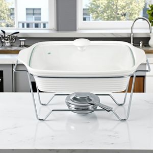 O rechaud retangular em cerâmica Fracalanza Eleonora é a solução definitiva para servir seus pratos em grandes recepções, unindo a beleza de uma peça de mesa com a máxima funcionalidade na cozinha. Este rechaud de 2,8 litros se destaca pelo formato retangular, ideal para pratos principais, e pela durabilidade do material.