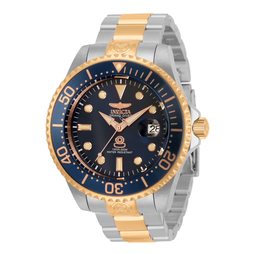 Atenção: Todos os produtos elétricos são 110V e necessitam de adaptador para a tomada no formato Brasileiro. Este relgio Invicta da coleo Grand possui um movimento Automtico preciso, caixa em ao e ouro rosa, alm de um mostrador decorado por um mostrador de metal azul protegido por um resistente Cristal Mineral. Possui uma pulseira em ao e ouro rosa e pode resistir gua at 300 m. A Invicta conhecida pela excelncia inovadora em cada coleo desde sua fundao em 1837. A Invicta Stores oferece a maior seleo de relgios Invicta online, com compromisso em oferecer o melhor valor pelos preos mais baixos. Observao: as cores nas imagens podem diferir ligeiramente do produto real. Especificaes do produto: Cor do mostrador: Azul Material do mostrador: metal Tamanho da caixa: 47 Tom da caixa: Ao, Ouro Rosa Material da Caixa: Ao Funo de moldura: Unidirecional Tipo de coroa: aparafusada Tipo de Pedra: Nenhum Cor Luminosa: Verde Material Luminoso: Tritnita Tipo de movimento: Automtico Componentes de movimento: Japo Fornecedor de movimento: TMI Calibre de movimento: NH35A Joias de Movimento: 24 Material da pulseira: ao inoxidvel Comprimento da banda mm: 205 Tamanho da pulseira mm: 22 Tipo de fivela: segurana dobrvel Banda intercambivel: No Cdigo da famlia do produto: PF0931 Tom da banda: tom prateado, tom ouro rosa Tipo de Cristal: Mineral Funo de calendrio: Data Categoria: Relgios Gnero: Masculino