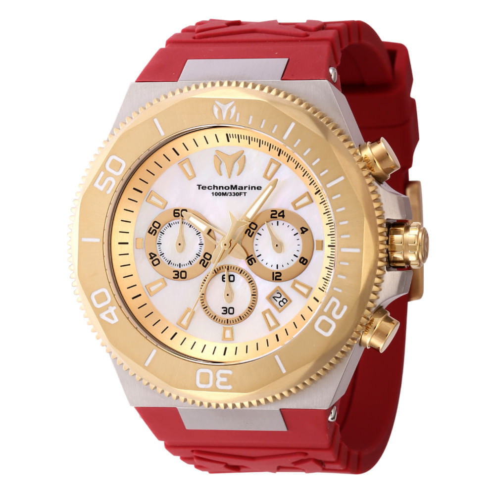 Atenção: Todos os produtos elétricos são 110V e necessitam de adaptador para a tomada no formato Brasileiro. Este impressionante relgio TechnoMarine Ocean apresenta um movimento preciso e uma caixa de ao e ouro. Seu mostrador de metal prateado, branco, ostra e madreprola envolto por um cristal mineral altamente protetor. . Este relgio finalizado com uma pulseira de silicone vermelha forte e oferece resistncia gua at 200 m. Desde a sua criao em La ChauxdeFonds, Sua, em 1837, um compromisso com a excelncia e a inovao tem estado no centro de cada coleo criada pela Invicta. . Aqui nas Lojas Invicta oferecemos o mais extenso catlogo de relgios desta magnfica marca aos preos mais baixos online. Conosco, voc encontrar atendimento ao cliente superior, uma garantia de 3 anos e um compromisso de longa data em oferecer o melhor valor disponvel. Em alguns casos, as cores nas imagens podem diferir ligeiramente do produto real. Especificaes do produto: Cor do mostrador: prata, branco Material do mostrador: Ostra, Madreprola, Metal Tamanho da caixa: 48 Tom da caixa: ao, ouro Material da Caixa: Ao Funo de moldura: Unidirecional Tipo de coroa: aparafusada Cor Luminosa: Branco Material Luminoso: New Lite Tipo de movimento: Componentes de Movimento: Suo Fornecedor de movimento: TMI Calibre de Movimento: VD53 Material da pulseira: Silicone Comprimento da banda mm: 195 Tamanho da banda mm: 30 Tipo de fecho: Fivela Cdigo da famlia do produto: TF1088 Tom da banda: vermelho Tipo de Cristal: Mineral Funo crongrafo: 60 minutos Funo de calendrio: Data Categoria: Relgios Subcoleo: Oceano Gnero: Masculino