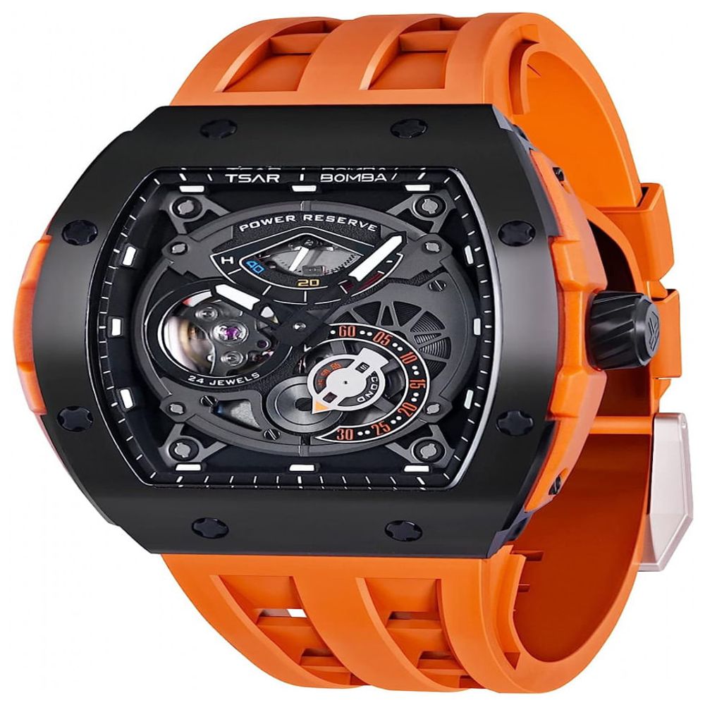 Atenção: Todos os produtos elétricos são 110V e necessitam de adaptador para a tomada no formato Brasileiro. TSAR BOMBA Esportista A estética do percurso é interpretada e o espírito do atleta é infundido nele. A reserva de energia de 40 horas, seu fogo inextinguível de entusiasmo faz você assistir à corrida de longa distância com uma concentração de tirar o fôlego. O atleta seguirá o tempo com precisão intransigente após ser preenchido com energia. Com linhas compactas e transparência instantânea do relógio TB 8210, a aparência de cada ponte, cada linha e cada engrenagem deve ser impecável.