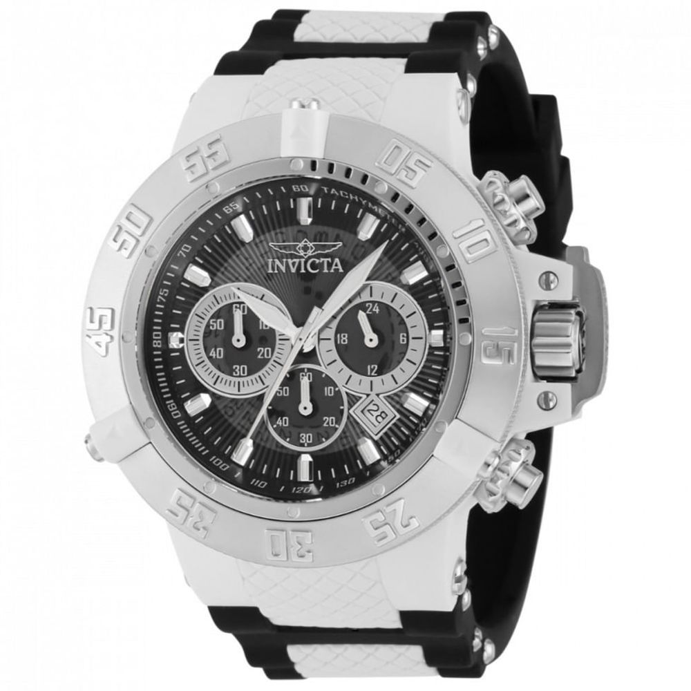 Atenção: Todos os produtos elétricos são 110V e necessitam de adaptador para a tomada no formato Brasileiro. Este relógio Invicta da coleção Subaqua possui um movimento de quartzo e apresenta uma robusta caixa de aço branco. Em sua face, você pode encontrar um mostrador de plástico preto e prateado coberto por um cristal mineral durável. Este estilo é finalizado por uma faixa preta, branca, de silicone e plástica confiável e oferece resistência à água de 200 m.