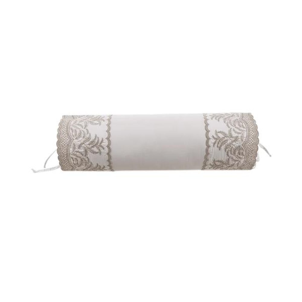 A Almofada Rolinho 16cm x 40cm La Collina é elegante e delicada, com fundo Branco e bordados em marrom, traz ricos bordados e texturas com desenhos geométricos e de lindas folhas, com minuciosos pontos no seu acabamento. Sua confecção é em Cetim 300 fios 100% Algodão Egípcio. Faça do seu quarto ainda mais elegante com Trussardi