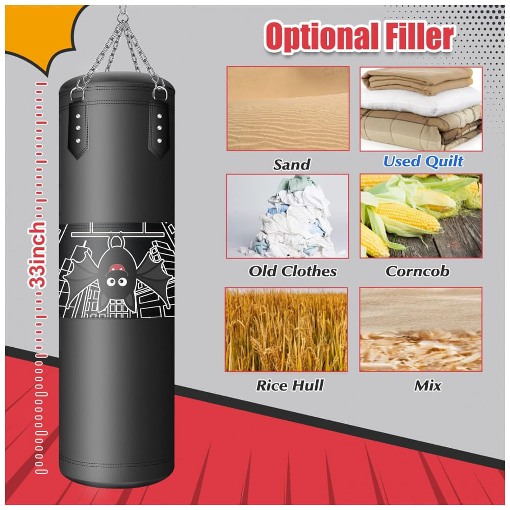 Atenção: Todos os produtos elétricos são 110V e necessitam de adaptador para a tomada no formato Brasileiro. O saco de pancadas infantil YORWHIN foi desenvolvido para treino recreativo de boxe e artes marciais, com corpo cilíndrico pendurado de aproximadamente 84 cm de altura e 26 cm de diâmetro, indicado para crianças e jovens em ambientes internos ou áreas cobertas. A estrutura é fornecida sem enchimento, permitindo o uso de tecidos, espumas ou outros materiais adequados para ajustar o peso de treino conforme a necessidade. ? A camada externa em tecido oxford e couro sintético PU forma um revestimento resistente para absorver impactos, enquanto o kit inclui luvas infantis com cerca de 170 g cada, bandagens de mão, corrente de suspensão, gancho de fixação e mosquetão, prontos para instalação em teto ou suporte compatível. O conjunto é indicado para práticas recreativas de boxe, karatê, kickboxing, taekwondo e muay thai, contribuindo para coordenação motora e gasto de energia de forma lúdica. Ficha Técnica: Marca: YORWHIN Fabricante: YORWHIN Modelo: YOO57G0131SD2 Tipo de produto: Saco de pancadas pendurado infantil com kit de luvas Dimensões do saco (AxD): 84 cm x 26 cm Dimensões informadas: 28 cm x 84 cm Cor: Preto Esportes indicados: Boxe, karatê, kickboxing, taekwondo, muay thai Faixa etária indicada: Criança, jovem e iniciante Uso: Treino recreativo em ambientes internos ou áreas cobertas Material externo: Tecido oxford e couro sintético PU Material interno (enchimento): Não incluso; compatível com tecido, espuma, serragem e enchimentos similares Peso do produto vazio: 1 kg Peso aproximado de cada luva: 170 g Fixação: Por corrente e gancho em teto ou suporte compatível Ambientes indicados: Academia residencial, quarto, área de treino interna, garagem coberta Estilo de uso: Treino de socos, chutes e joelhadas Origem: Importado Manual do usuário: Inglês Componentes do kit: Saco de pancadas 84 cm (sem enchimento) 1 par de luvas infantis 170 g Corrente de suspensão Gancho de expansão Mosquetão de conexão Bandagens para mãos