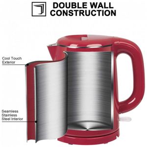 Capacidade de 1,0 litro, construção de parede dupla ferve a água mais rapidamente e mantém o calor por mais tempo. Exterior de toque fresco sem BPA, sem risco de escaldadura. 120V 60Hz, potência de aquecimento de 1000W. Produto Aprovado ETL.