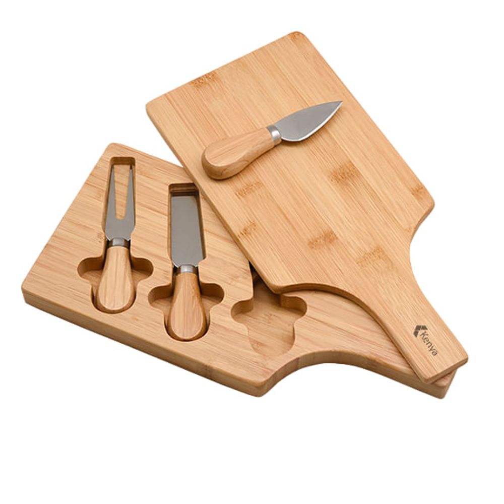 • Composição do Kit: 1 tábua de bambu, 1 garfo de queijo, 1 faca para queijo duro e 1 faca para queijo macio