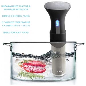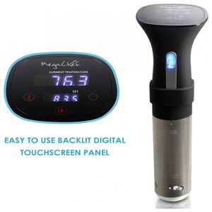 Atenção: Todos os produtos elétricos são 110V e necessitam de adaptador para a tomada no formato Brasileiro. PAINEL DE CONTROLE SIMPLES A tela sensível ao toque digital retroiluminada é feita para uso sem esforço e suave DEFINIR E ESQUECER Uma vez que o temporizador e a temperatura tenham sido definidos, você pode sentar e relaxar O fogão circulador de imersão sous vide traz técnicas de cozimento profissionais para sua casa. Oferece controle total sobre o processo de cozimento, inigualável por outras técnicas de cozimento. Com uma tela de toque digital, você pode definir rápida e facilmente a temperatura e o tempo de cozimento desejados para um cozimento preciso, sempre.