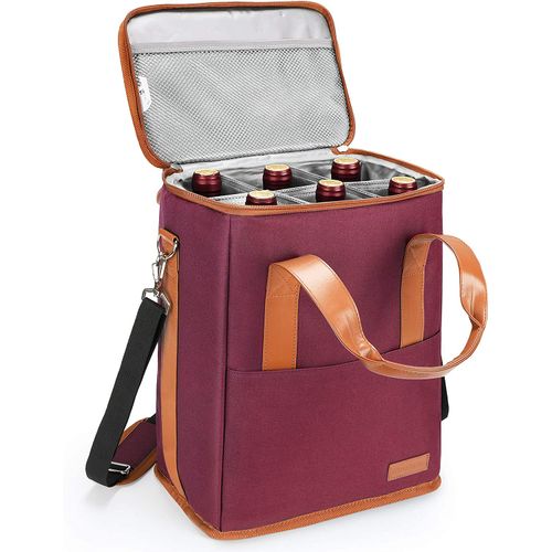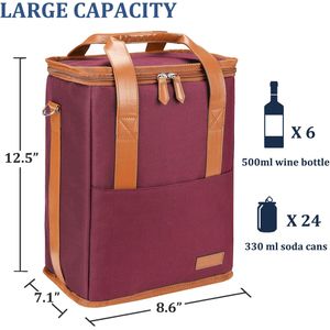 Produto importado dos Estados Unidos o prazo de entrega e de ate 25 dias uteis As importacoes sao oficiais atraves do Regime de Tributacao Simplificada da Receita Federal O preco inclui imposto de Importacao ICMS Frete Nacional Frete Internacional Servicos Alfandegarios e a intermediacao de cambio para pagamento no exterior O preco ja inclui todos os custos nao sera cobrado nenhum valor extra para o recebimento do produto ATENCAO Todos os produtos eletricos sao 110V e necessitam de adaptador para a tomada no formato brasileiro O cabo forte o material espesso acolchoado e com isolamento termico e a alca ajustavel tornamno o portavinho perfeito para atividades ao ar livre Excelente para transportar vinho para festas jantares vinicos restaurantes festas na piscina ou na praia piqueniques concertos e eventos desportivos Coloque o seu vinho nesta bolsa e comece a sua viagem a vontade ACOLCHOADO E ISOLADO TERMICOMaterial com isolamento termico de PU e enchimento de espuma PE de 5mm protegem suas garrafas de vinho de colisoes externas mantenha 6 garrafas de vinho intactas e bem refrigeradas por horas DIVISOR REMOVIVELO divisor acolchoado interno mantem 6 garrafas de vinho separadas e evita que batam umas nas outras Tambem e removivel voce pode usar a bolsa de vinho como uma bolsa termica isolada para piquenique ou transportar agua bebida ou cerveja ESPACO AMPLO DE ARMAZENAMENTO20 x 17 x 30 cm a transportadora de vinho de tamanho grande tem amplo espaco para 6 garrafas de vinho de tamanho normal PRESENTE DE AMANTE DE VINHO IDEALAparencia elegante e design pratico tornam este portavinho adequado para amantes de vinho de todas as idades Se sua familia ou amigos sao bebedores de vinho e gostam de compartilhar vinho com outras pessoas este portavinho seria um excelente presente para eles