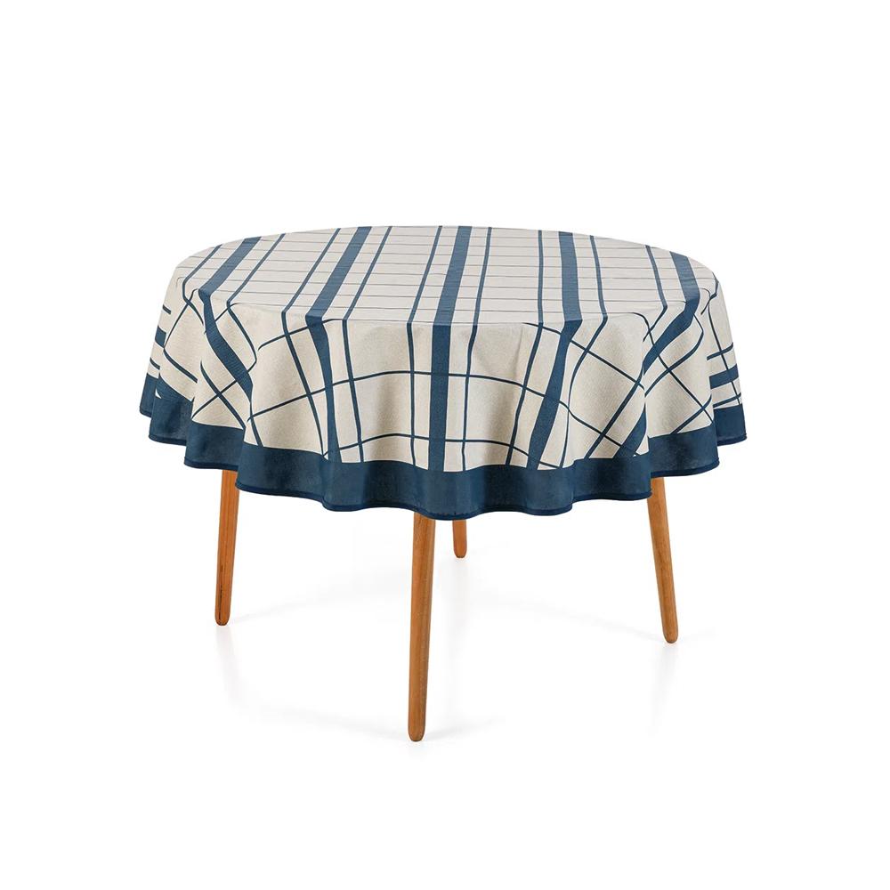 A toalha de mesa redonda Bonami serve para 8 lugares.A estampa listrada azul harmoniza o ambiente. Seu desenho é dimensionado e possui acabamento Sempre Limpa trazendo facilidade para o dia a dia.
