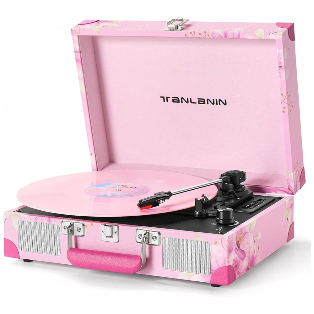 Atenção: Todos os produtos elétricos são 110V e necessitam de adaptador para a tomada no formato Brasileiro. Aprecie a nostalgia com o Toca-discos de Vinil em uma maleta de couro rosa com flores, resistente e pronta para viagens. Com display LED amigável para iniciantes, é ideal para presentear amantes de vinil ou decorar sua casa. Grave suas músicas favoritas em alta qualidade, sem a necessidade de dispositivos externos. Controle de Velocidade Preciso, Proteção de Parada Automática e Conectividade Estendida com Bluetooth 5.0 e entrada AUX para reprodução sem fio ou com fio. Aproveite suas músicas em diversos dispositivos e sistemas de áudio. Especificações: Dimensões do Pacote: 38,8 x 30,5 x 15 cm, Peso do Item: 2,72 Kg, Número do Modelo: TE-001D-PK, Fabricante: TANLANIN, Velocidade Rotacional Máxima: 78 RPM, Componentes Inclusos: 1 Adaptador 45 RPM, 1 Adaptador de Energia 5V 1A (100V-240V), 1 Toca-discos Rosa, 1 Manual do Usuário, Característica Especial: Design antirressonância, Display LED, Acabamentos decorativos, Gravação de Áudio via USB, Material: Madeira Compensada, Metal, Plástico, Estilo: Moderno, Cor: Rosa, Nome Modelo: TE-001D-PK, Dispositivos Compatíveis: Smartphone, Alto-falante Voltagem:110 volts